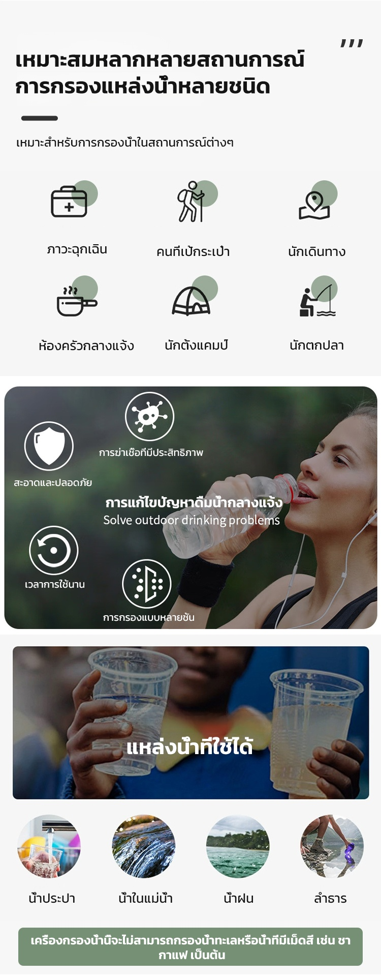 🏕️ น้ำหนักเบา พกพาสะดวก กรองน้ำกลางแจ้งให้บริสุทธิ์ได้ทันที