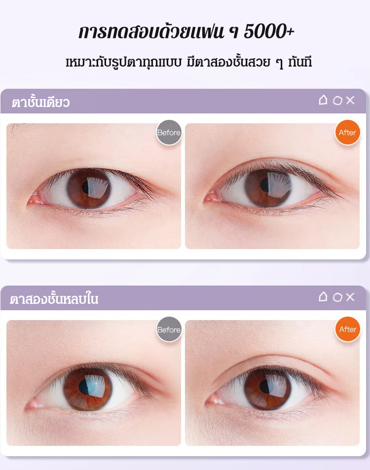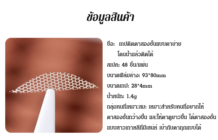 🌸น้ำหนักเบาและไม่ทำให้รู้สึกหนัก แทบมองไม่เห็นแม้ไม่ได้แต่งหน้า ช่วยให้เปลือกตาของคุณ "ดูหนาขึ้น" ได้ทันที! เหมาะสำหรับการแต่งหน้าในชีวิตประจำวัน ออกเดท ปาร์ตี้ หรืออยู่หน้ากล้อง ให้ดวงตาของคุณมีเสน่ห์ดึงดูดใจ💫