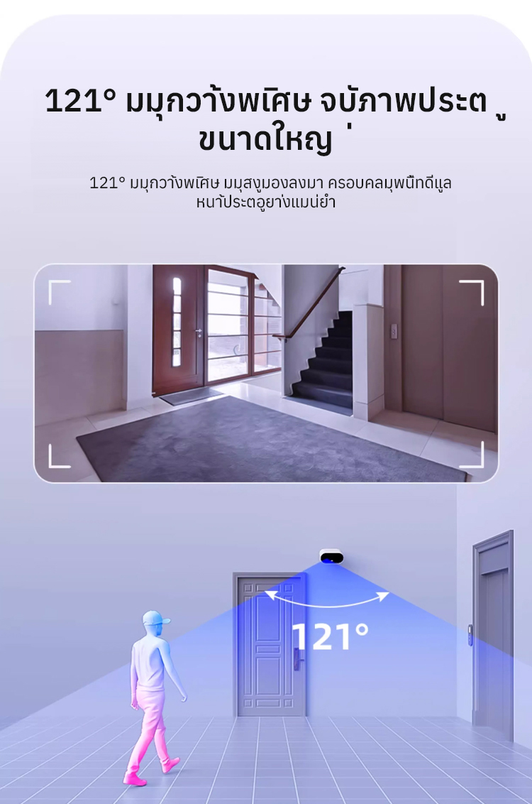 📱 ดูภาพแบบเรียลไทม์จากระยะไกลผ่านโทรศัพท์ของคุณ คุณภาพภาพระดับ 2K ความละเอียดสูงพิเศษ ชัดเจนทั้งกลางวันและกลางคืน! สลับระหว่างอินฟราเรดและโหมดมองเห็นกลางคืนได้อย่างชาญฉลาด ครอบคลุมมุมกว้าง 121° แสดงให้เห็นประตูทางเข้า สนามหญ้า และห้องนั่งเล่นได้อย่างชัดเจน 👀