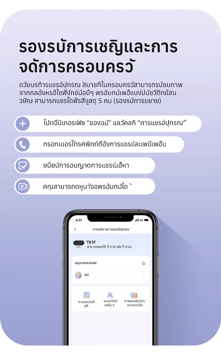 🚨 ระบบตรวจจับความเคลื่อนไหว AI ติดตามผู้บุกรุกโดยอัตโนมัติ ส่งสัญญาณเตือนและบันทึกวิดีโอความละเอียดสูงทันที ช่วยให้คุณอุ่นใจในเรื่องความปลอดภัยของบ้าน! รองรับการแชร์หลายผู้ใช้ ให้ทั้งครอบครัวดูด้วยกันได้สูงสุด 5 คนพร้อมกัน 👨👩👧👦