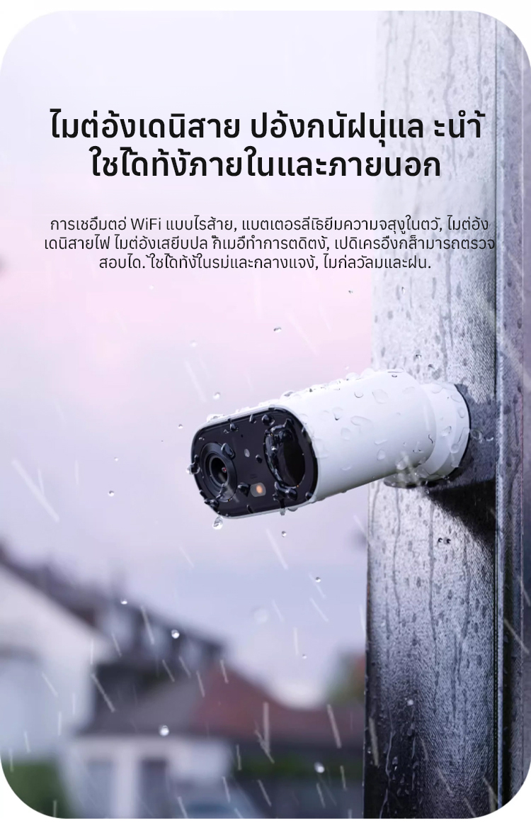 💧 ออกแบบกันน้ำและกันฝุ่น ไม่ต้องกังวลกับสภาพอากาศภายนอก ไม่ต้องเจาะหรือเดินสายไฟ ชาร์จเต็มใช้งานได้นานถึง 120 วัน! เฝ้าดูเด็กๆ สัตว์เลี้ยง บ้าน หรือร้านค้า—กล้องตัวเดียวทำได้ทุกอย่าง!