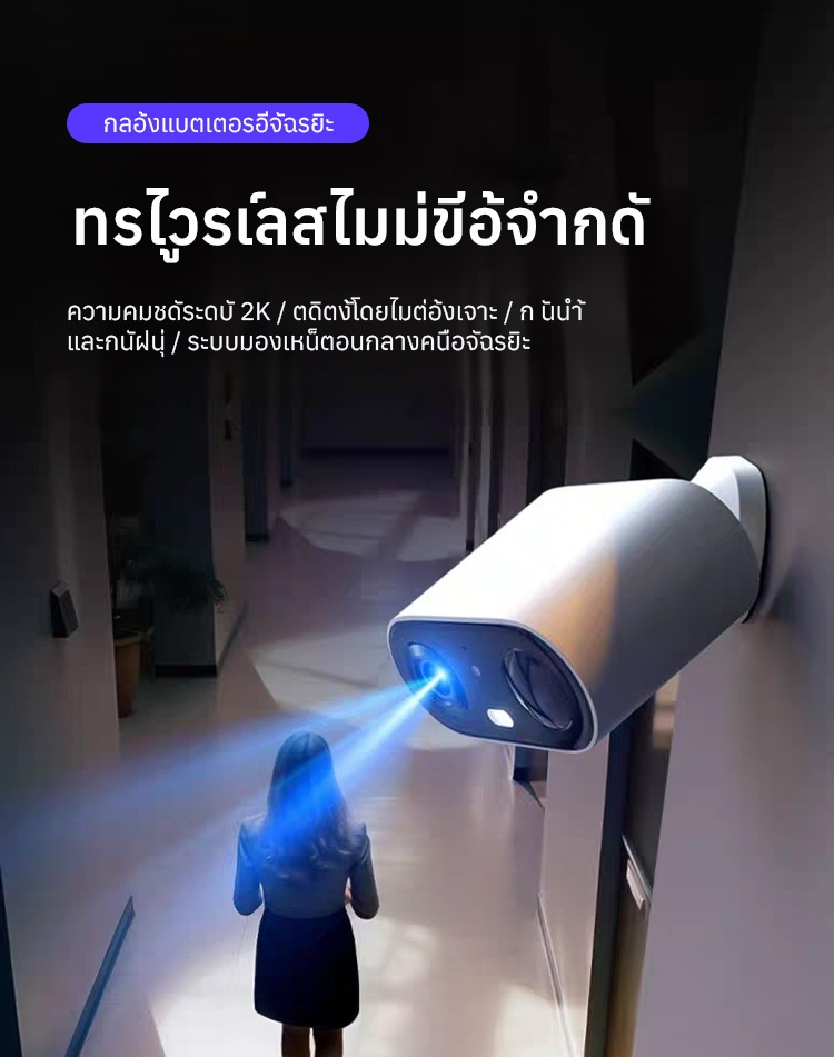 🔋ไม่ต้องใช้ไฟฟ้า ไม่ต้องเดินสายไฟ ตรวจสอบความปลอดภัยภายในบ้านจากระยะไกลผ่านโทรศัพท์มือถือ! การตรวจสอบแบบไร้สายความละเอียดสูงระดับ 2K ปกป้องทั้งครอบครัวของคุณทั้งกลางวันและกลางคืน🏠