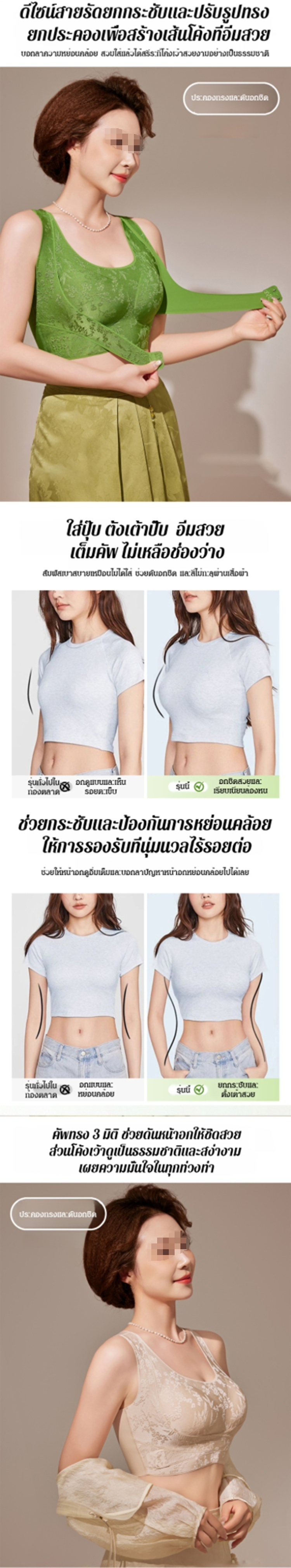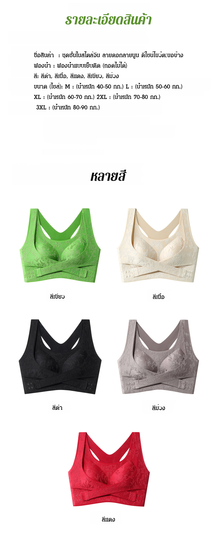 🌸 ดีไซน์ปิดด้านหน้า สวมใส่และถอดง่าย สวยงาม และดูดีอย่างเป็นธรรมชาติ!