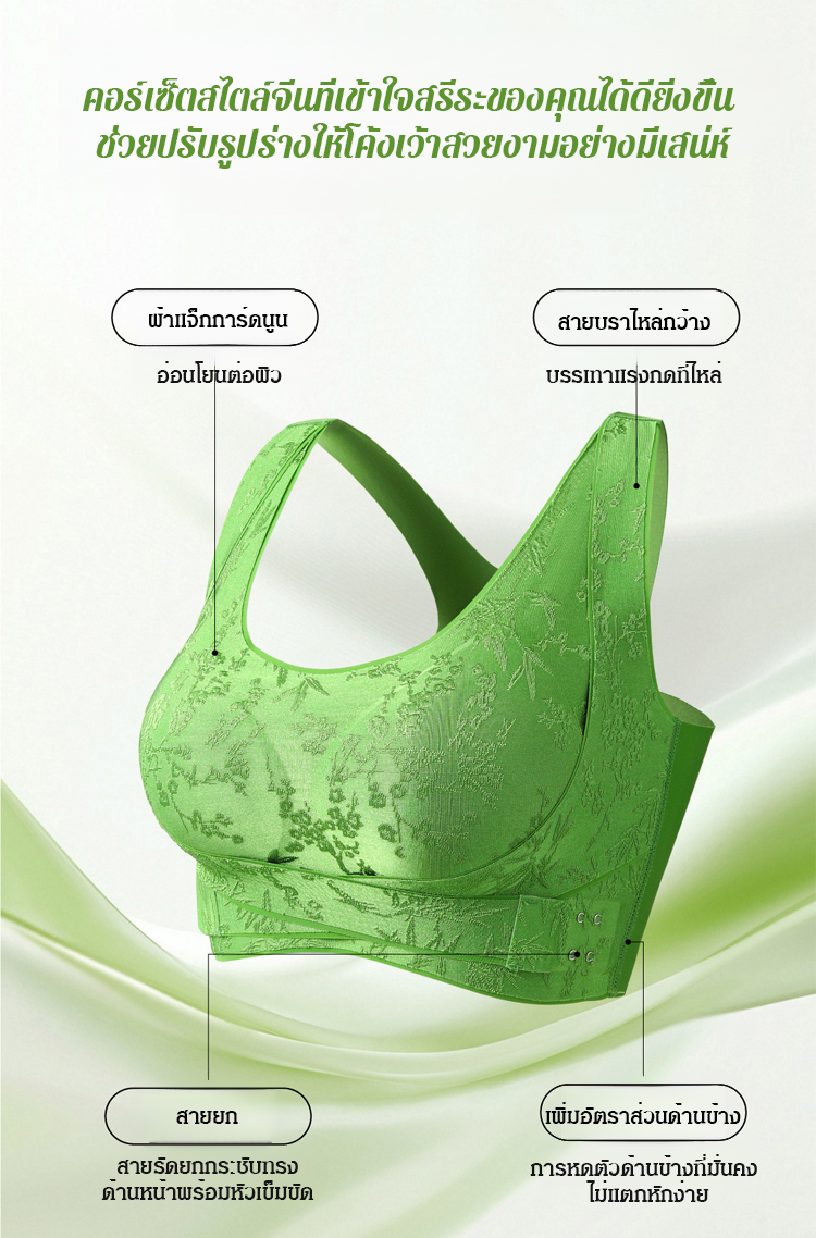 🍃 การยกกระชับที่ทรงพลังและการจับจีบโค้งมน ช่วยสร้างรูปทรงหน้าอกที่ดูเป็นธรรมชาติและเต็มอิ่ม ในขณะที่ดีไซน์ด้านหลังที่สวยงาม ช่วยลดแรงกดบนไหล่และคอ ขจัดรอยและความรู้สึกอึดอัด